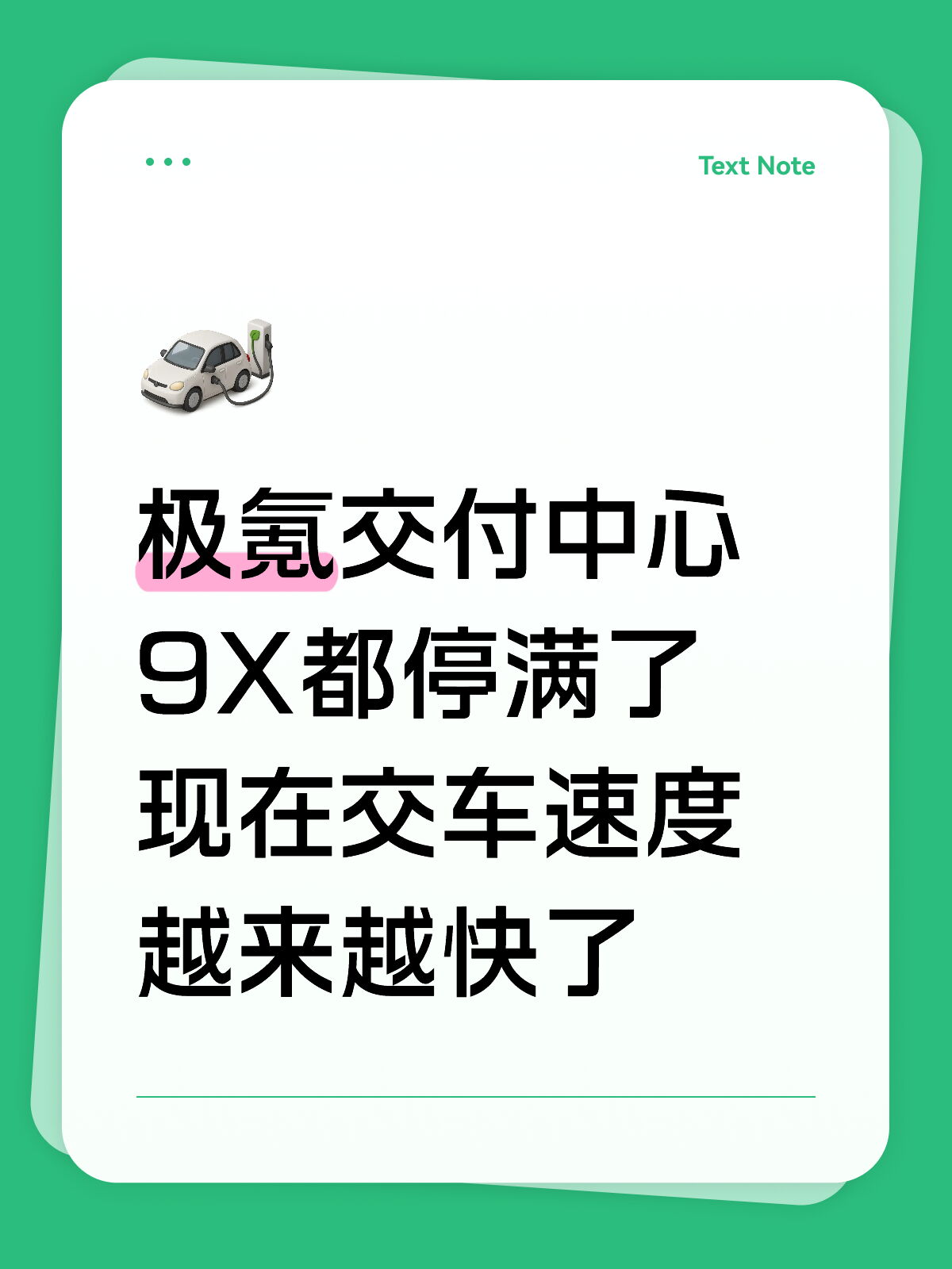 前两天来提极氪9X,交付中心的工作人员跟我们讲,现在基本每天都有好几台车交出去,其实他们也蛮无奈的,天天被催,但他们也想交车,主要问题是订车的太多...