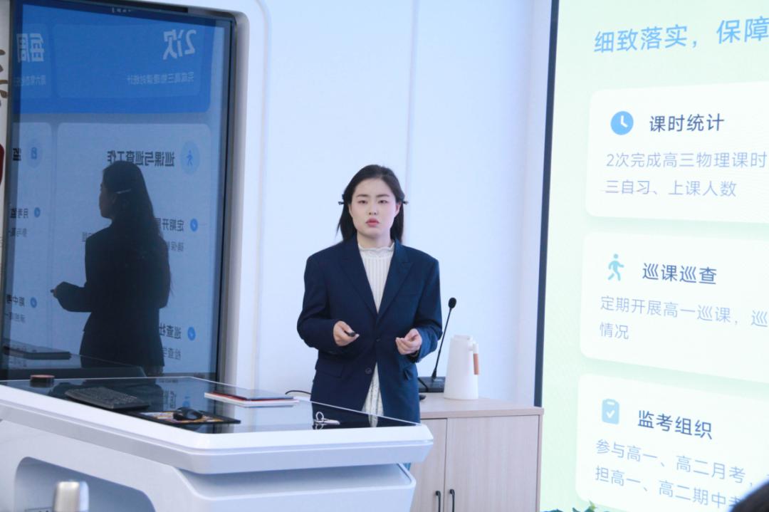 教师述职结束后,德育副校长翟宇结合会议内容发表讲话,既饱含对教师的理解与关怀,又提出针对性指导意见。