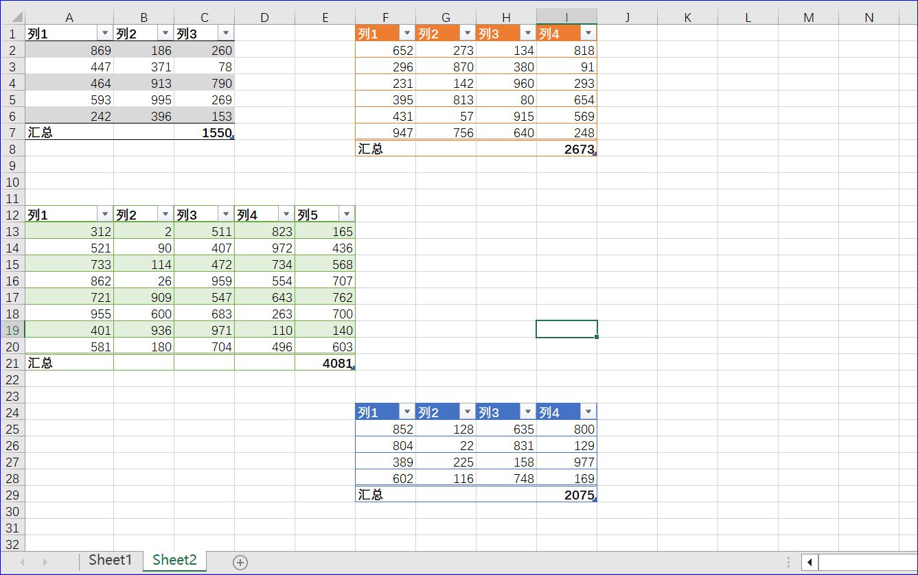 程序的目的是利用VBA 遍历工作簿中的Table。在这个应用中我先给出了几个表:
