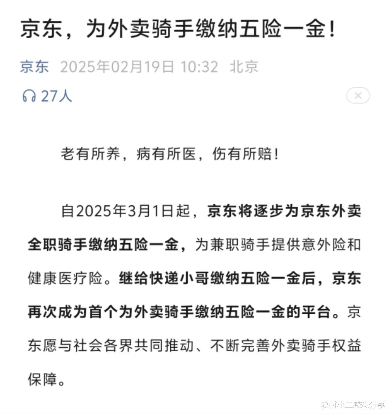 骑手端:全职骑手五险一金全额由京东承担,兼职骑手享意外险 + 健康医疗险。上海骑手王师傅说:“终于不用为省社保钱熬夜接单了。”