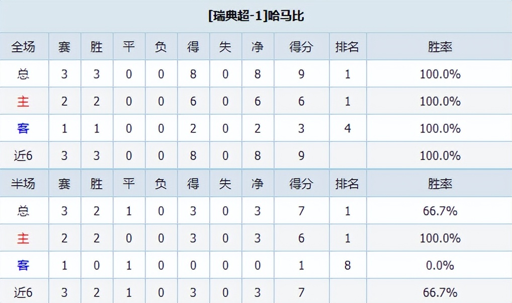 米亚尔比防守稳健,但进攻效率一般,联赛主场仅进1球;哈马比客场防守出色(0失球),且进攻端场均进球数高达2.7个
