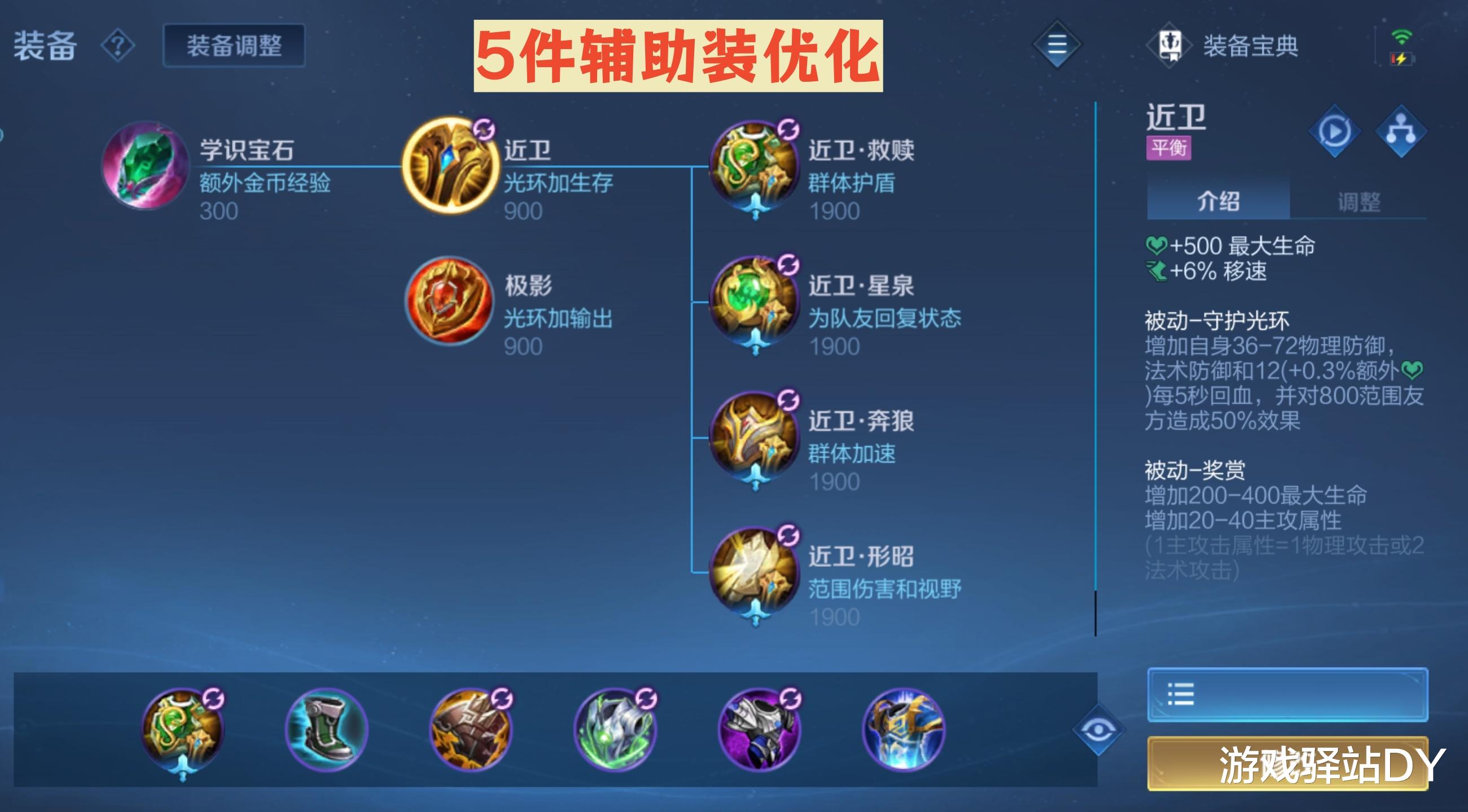 另外还有发育路和5件装备的调整,其中发育路4分钟前的兵线和发育路红隼的法术防御统一调整为180。而装备主要涉及游走路,分别是2/3级近卫被动的“守护光环”回血效果更改为基于最大生命值,近卫·救赎和极影·救赎增加的护盾值由固定680-1800 更改为 240~480(+10%最大生命),这波调整后肉装辅助出近卫或救赎的保护和续航效果更好;除此之外,还有近卫·形昭和极影·形昭的主动技能伤害削减1%,作为弥补未命中目标返还的CD增加5%,而近卫·奔狼和极影·奔狼的增强简单直接,提升了1秒的加速时长,间接增加了先手开团或集火单个目标的成功率!