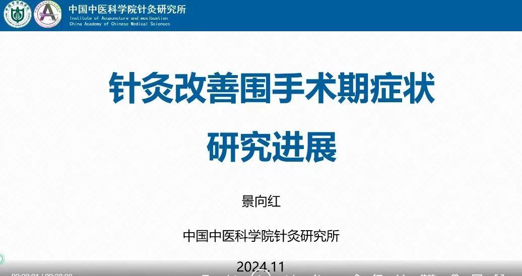 中国中医科学院针灸研究所所长、中国中医科学院首席研究员景向红(线上)从“针灸改善围手术期症状研究进展”这一角度作出了经验分享,为针灸治疗围手术期症状的发展提供新思路;