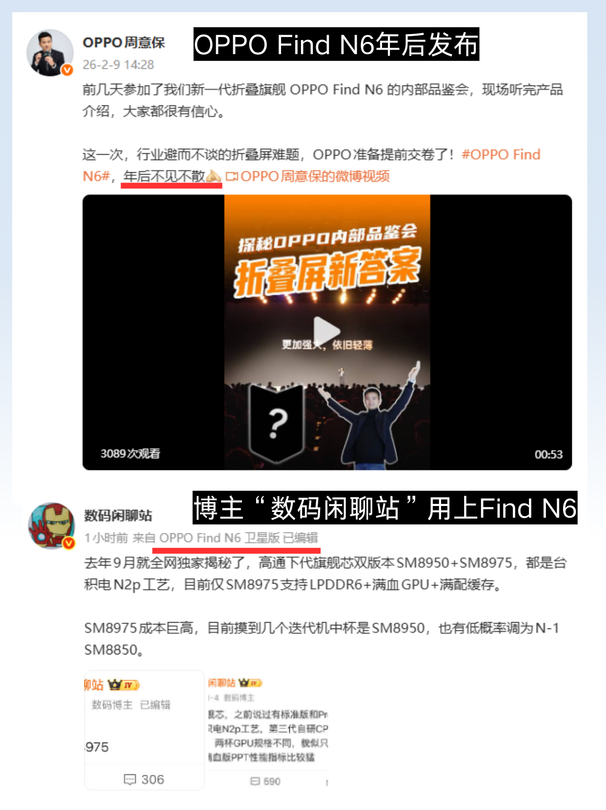 另外看周意保爆料信息,Find N6应该是春节后发布,毕竟内部品鉴会已经开完了。所以可以等等它,看看折痕到底进步到什么程度?