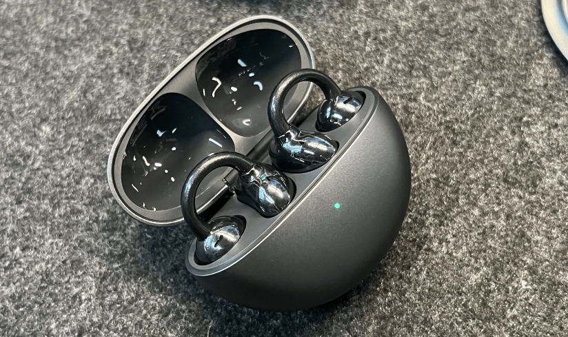耳机整体造型偏圆润,耳夹弧度贴合耳廓,夹持感比较柔和。单耳重量很轻,长时间佩戴压力小,适合办公或者全天候佩戴,日常活动中的稳定性表现不错。