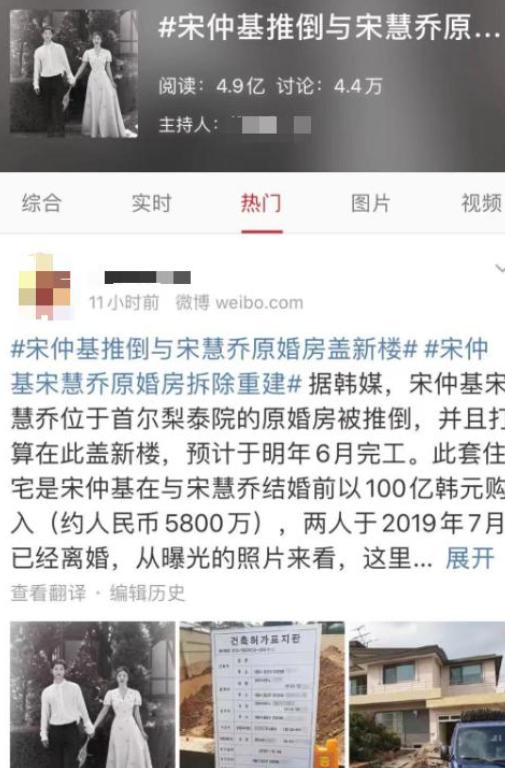 早前,有媒体报道,“双宋”离婚后,宋仲基直接推倒了两人的婚房。