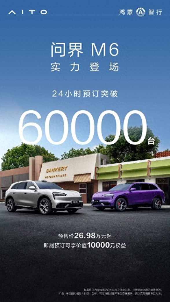 3月底,车市迎来一匹黑马,新锐智慧SUV问界M6正式开启小订。仅仅24小时后,订单量便强势突破6万台大关。这不仅是一个数字的胜利,更意味着问界M6凭借其“大气场、大舒适、大脑洞、大视野”四大核心产品力,精准击中了当下用户对高品质出行的深层渴望,迅速赢得了市场广泛认可。问界M6展车现已火热到店,全国门店迎来大批用户到店围观品鉴,现场人气持续高涨,直观感受新车硬核实力的热潮席卷各地,再度印证了市场对问界M6的超高期待。