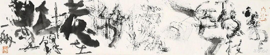 Your artistic language also engages in a spiritual dialogue with Western abstract expressionism. The action painting of Pollock, the lyrical abstraction of Zao Wou-Ki-using the body as medium, action as process, spirit as ultimate goal-are all translated into an Eastern idiom in your work. With brush, rice paper and ink, you have accomplished a Chinese literati"action art".