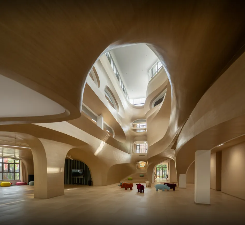 幼儿园中庭设计千千万,唯一不变的是以儿童为中心。无论是开放式的自然乐园,还是封闭式的室内乐园,这些中庭都早已超越单纯的交通与采光功能,演变为融合游戏、学习、社交与美育的复合载体。