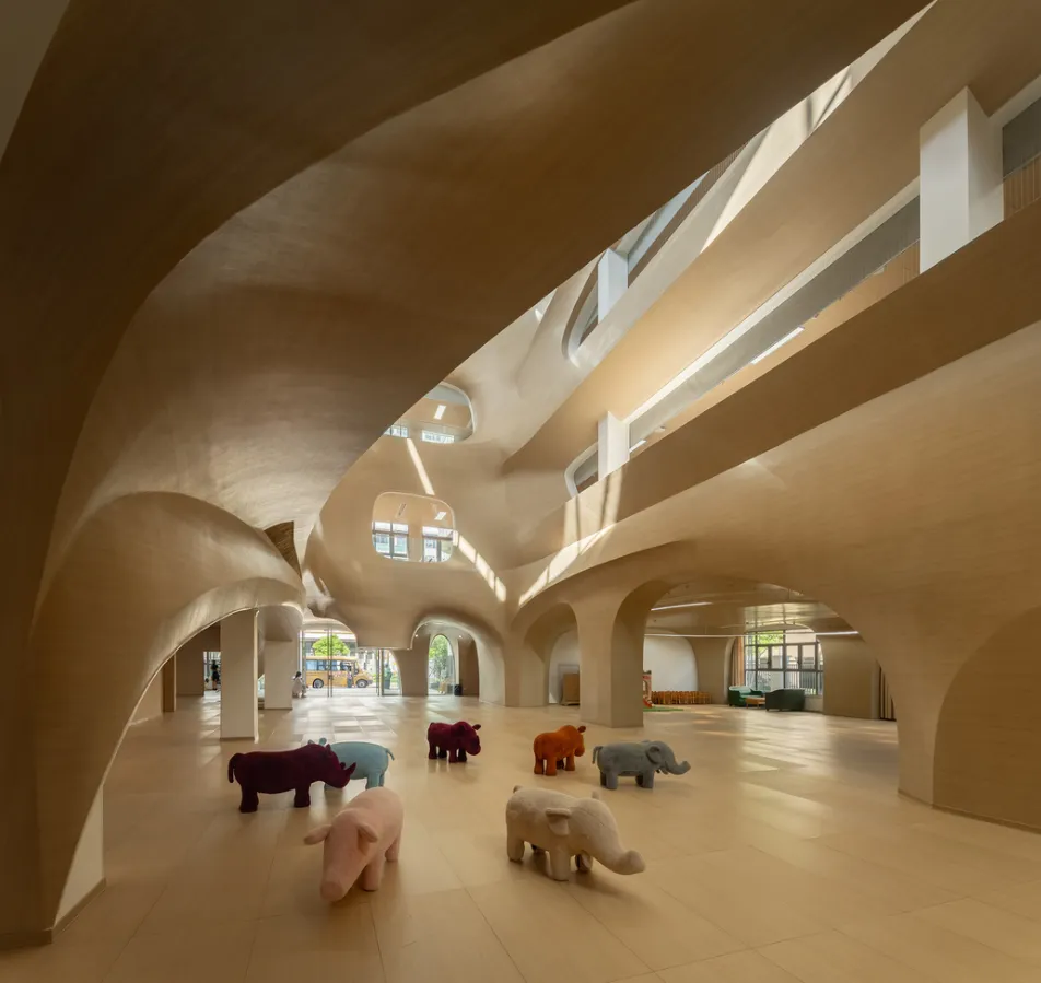 而优秀的幼儿园中庭设计往往能将教育理念、空间美学与儿童需求巧妙融合,成为园所的灵魂空间。接下来我们就看看这几个典型案例。