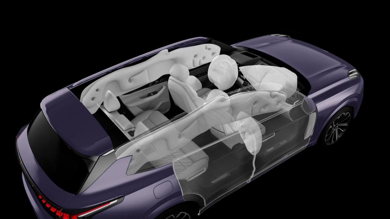 车内防护同样全面:前后纵梁热成型钢结构一致,后排座椅背防穿刺高强度钢板,2550mm超长保压侧气帘覆盖A柱至D柱,副驾驶配国内首创狐首型气囊,在偏置碰撞时提供完整头部承托。