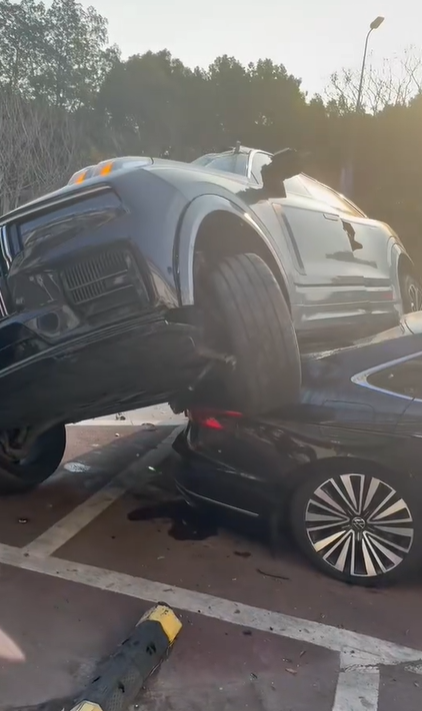 事故发生过程堪比动作大片。一辆转弯车辆未礼让外道直行车辆,撞上绿化带腾空失控,直接横向冲上领克09。领克09因此连续翻滚多圈,冲出原车道,最终撞上路边停放车辆。