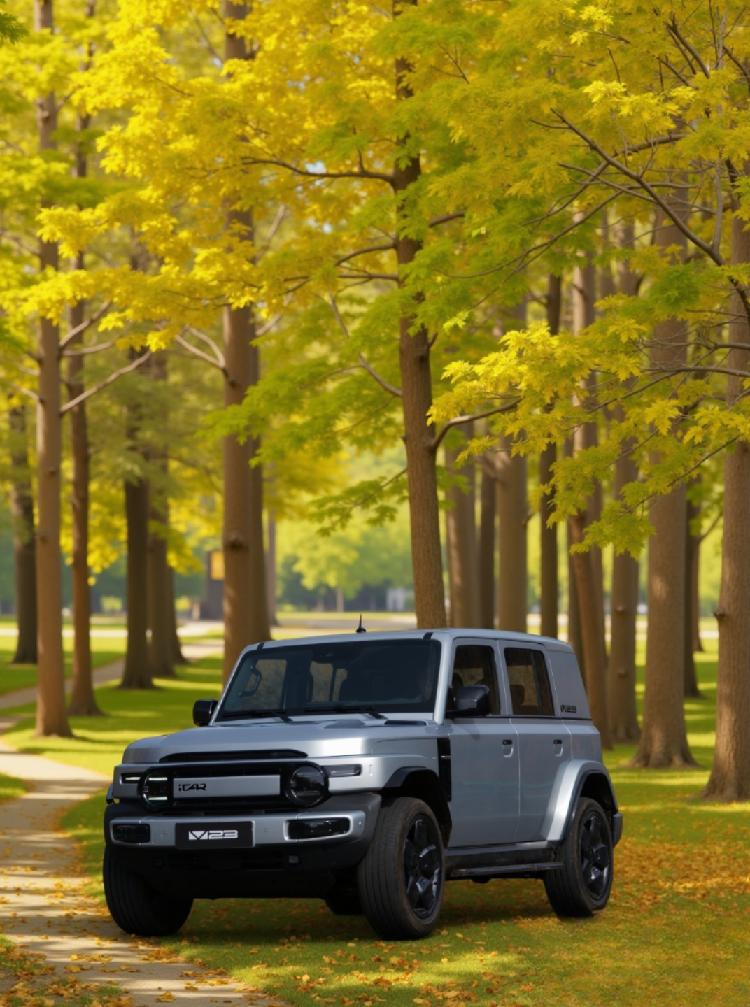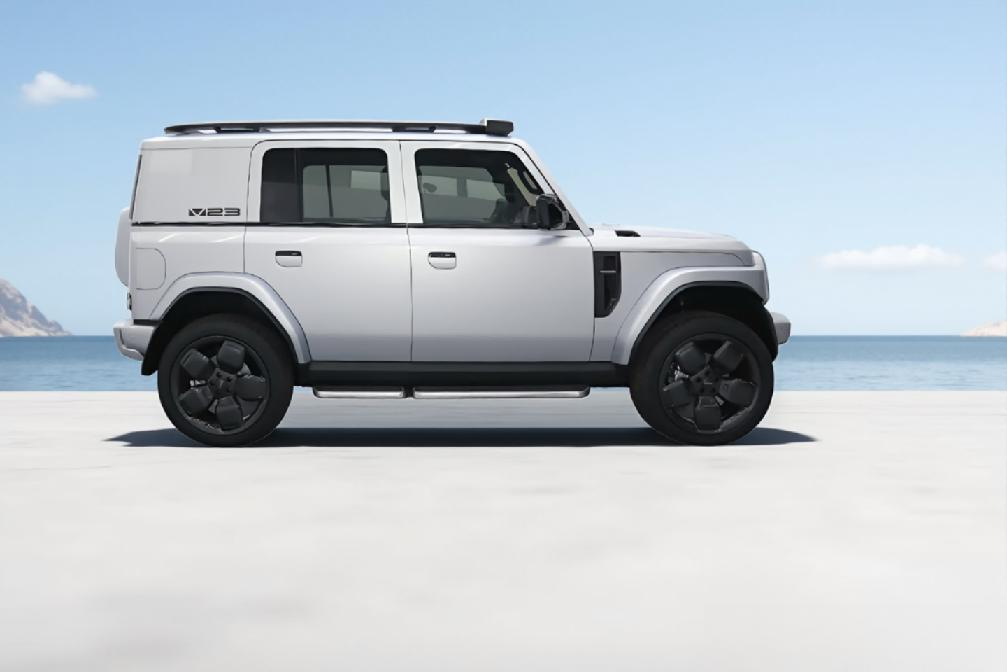 iCAR V23车身造型拥有极致宽高比,其两驱标配19吋,四驱标配21吋,官方提供18吋到21吋另外3种轮毂和18吋AT胎选装。除此之外,iCAR V23车身尺寸也具有优势,车长是4220mm、车宽是1915mm、车高是1845mm、轴距2735mm。