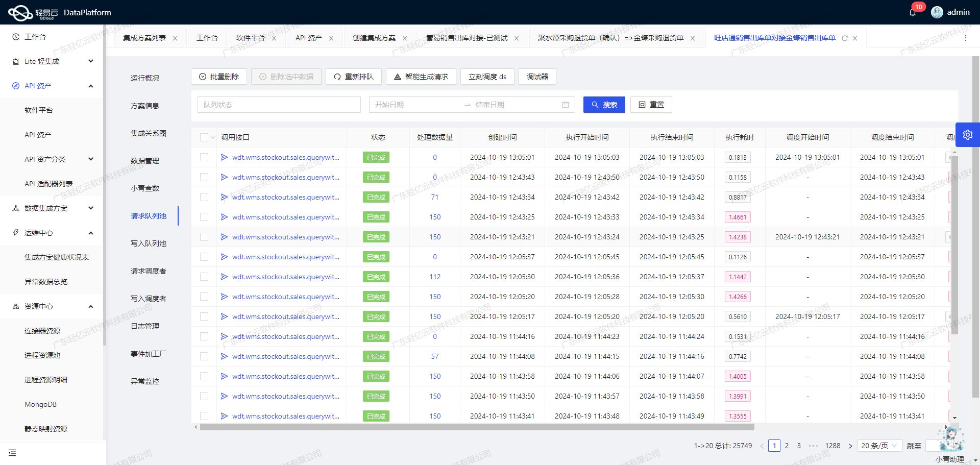集成背景与需求在本次集成方案中,我们需要从金蝶云星辰V2获取移仓单数据,并将其写入到旺店通·企业奇门作为其他出库单。这一过程不仅要求高吞吐量的数据写入能力,还需确保数据不漏单,实时监控任务状态,并处理两者之间的数据格式差异。