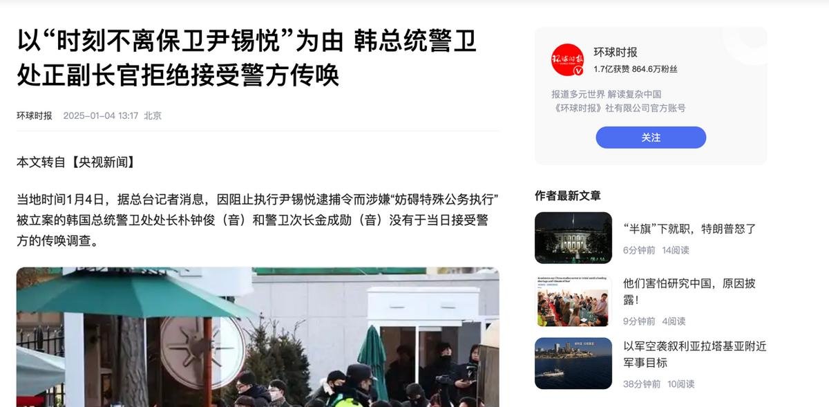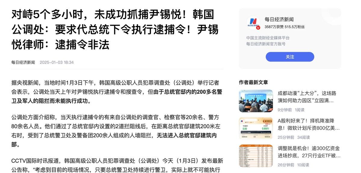 他们现在表现出非常强烈的对抗态度,这使得韩国相关部门一度未能成功逮捕尹锡悦。
