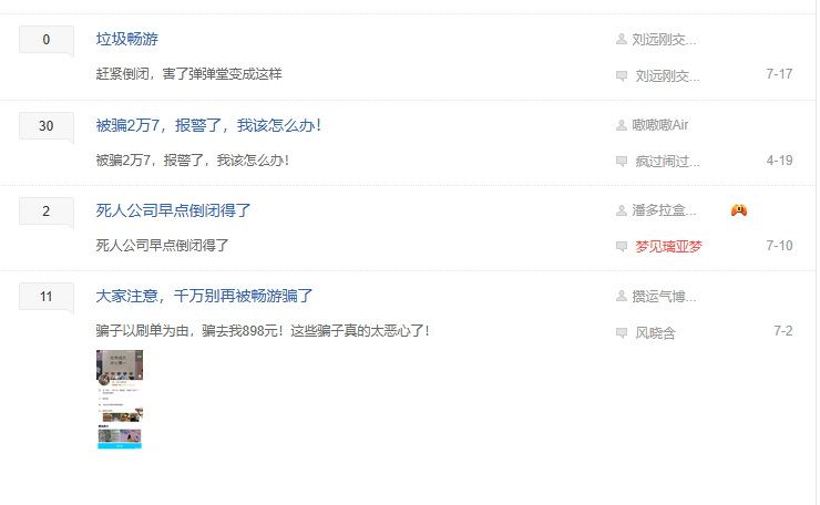 但畅游属实委屈,因为是骗子诱导受害者充值的畅游币,和畅游没半毛钱关系。但受害者被骗之后找不到骗子,只能找畅游撒气。几乎所有的受害者都在骂畅游,以为畅游和骗子是一伙的,蛇鼠一窝。