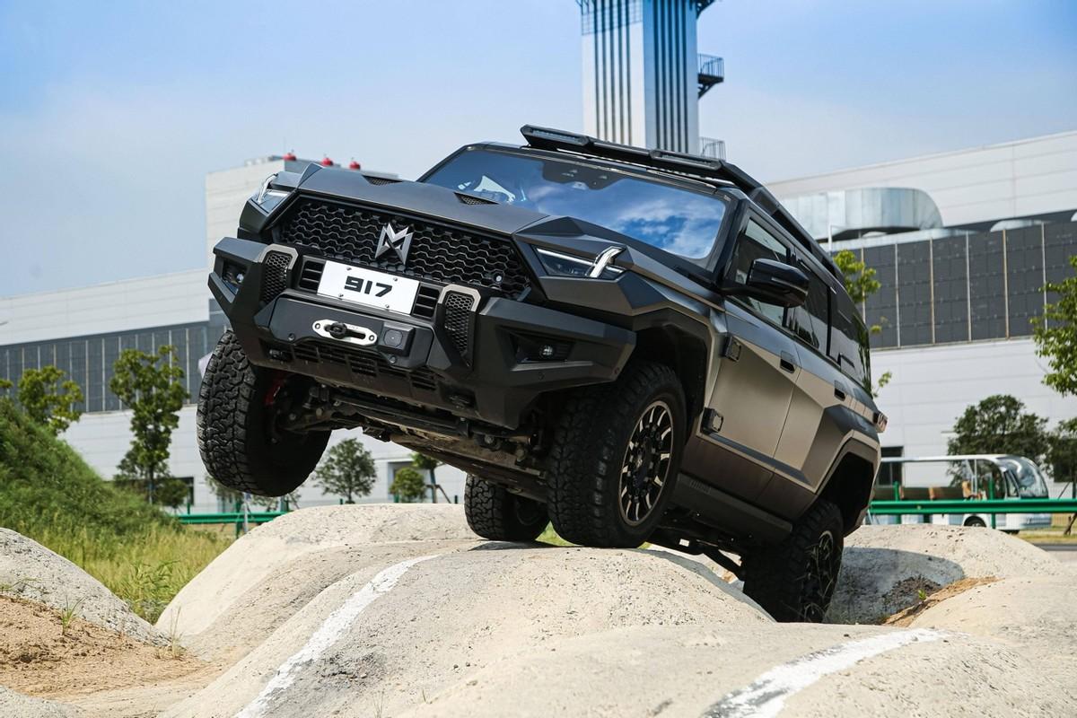 除了动力和续航方面的优势,东风猛士917还具备出色的越野性能。其非承载式车身结构和双叉臂独立悬挂系统,使得车辆在面对崎岖不平的路面时能够保持稳定的行驶姿态。同时,车辆还配备了前后电控差速锁和榫卯差速锁等越野配置,进一步提升了车辆的越野能力和脱困能力。