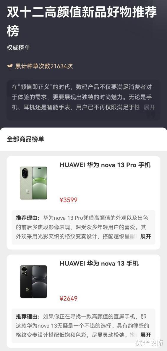 华为nova 13系列上榜了「什么值得买」的「双十二高颜值新品好物推荐榜」,作为已经上市一个多月的产品,华为nova 13系列的产品力还是非常强的,不仅拥有出众的外观设计,影像上也有不错的体验。除了外观设计和影像,华为nova 13系列还有很多的亮点你可能没有发现,这篇文章就带大家一起来看看。