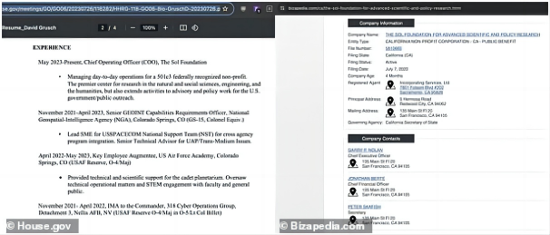 在去年7月向众议院监督委员会提供令人震惊和爆炸性的UFO证词之前,格鲁施向国会提交了一份简历,列出了他目前作为Sol基金会首席运营官的职位 - 但Sol的发言人告诉 DailyMail.com,至少“现在不是这样”。