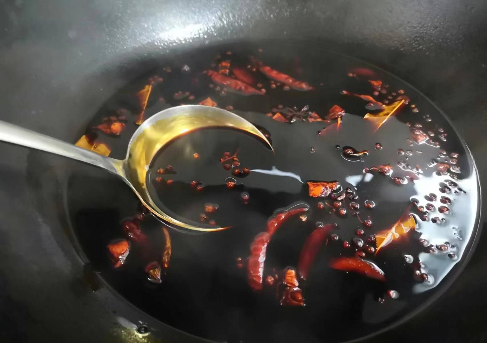 热锅中加油,放入花椒和干红辣椒爆香,再将其与海带丝混合,加入盐、白糖、生抽、香醋和香油拌匀即可。