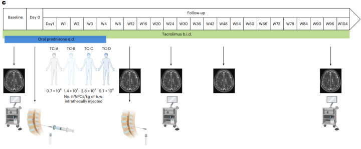 近期,来自意大利IRCCS San Raffaele科学研究所等机构的研究人员在国际顶尖医学期刊Nature Medicine上在线发表了题为:Neural stem cell transplantation in patients with progressive multiple sclerosis: an open-label, phase 1 study的研究论文。