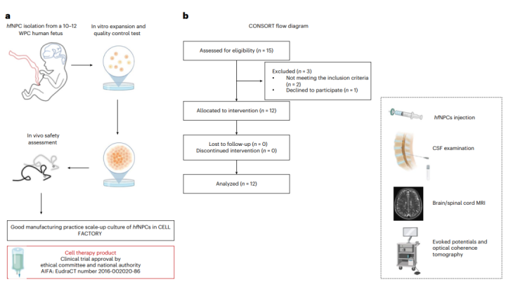 这是全球第一项评估人类胎儿来源的神经干细胞/前体细胞(hfNPC)移植在进行性多发硬化症患者中的安全性的1期临床试验。