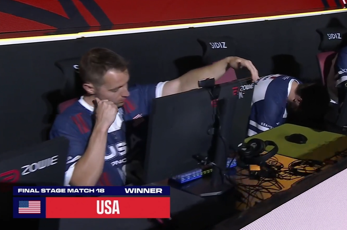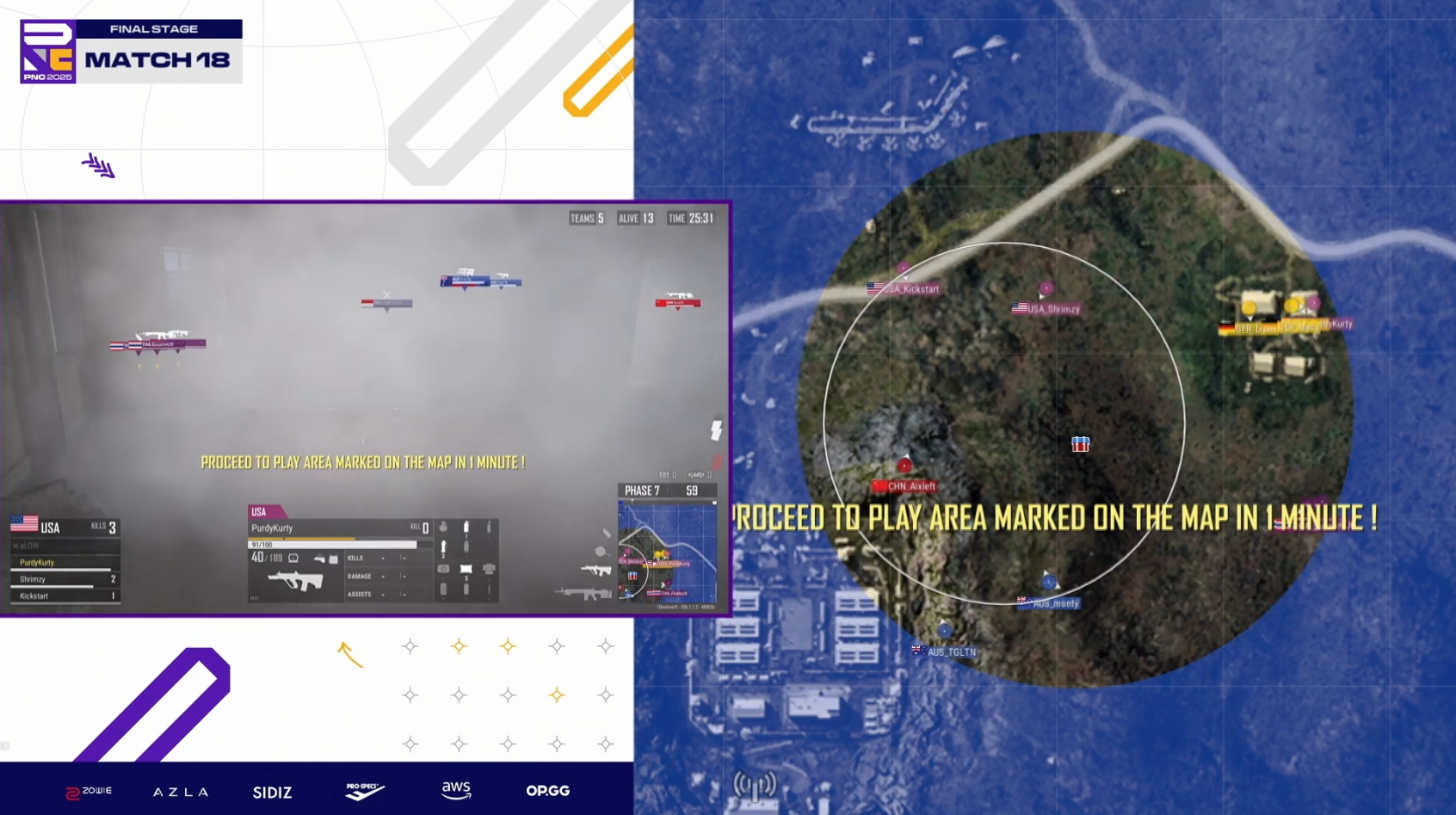 阶段7圈形刷新,XDD所在的坑位刚好是AUS的视野盲区,此时THA还绕到了AUS的身边,这下XDD暂时安全了。USA卡掉房区出来的GER后被XDD炸倒一人,这下北边变成了1v1的局面,而南边的AUS打掉THA后还剩两人,XDD主动拉上山去打AUS被离谱哥补枪带走,好像咱们很久没提到离谱哥了,残局的2打1时AUS凭借人数和高点优势拿下USA吃下决赛的最后一鸡。更有意思的是导播切镜头时给出了“WINNER USA”的字样,太好孝了。