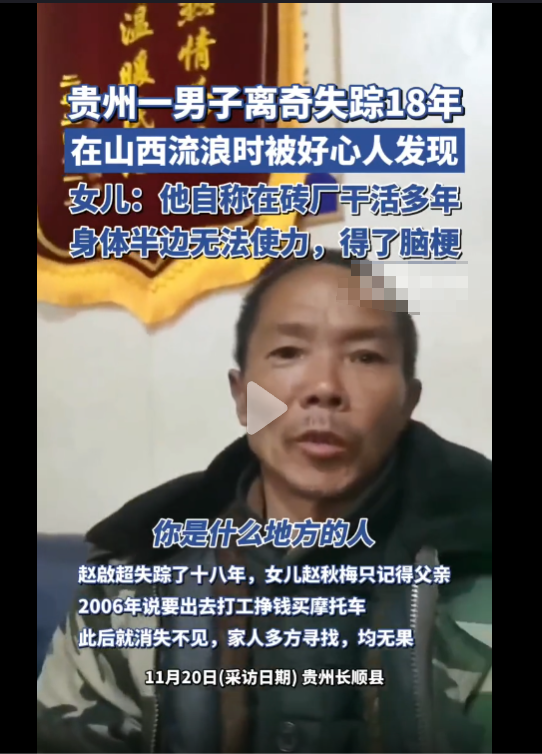 这不仅是一个家庭的故事,更是一场对社会底层劳动者权利的深刻反思。赵啟超的经历告诉我们,每一个人的“消失”,都值得被关注;每一次归来,都承载着沉甸甸的答案。希望未来,我们能少一些失联,多一些温暖的守护。