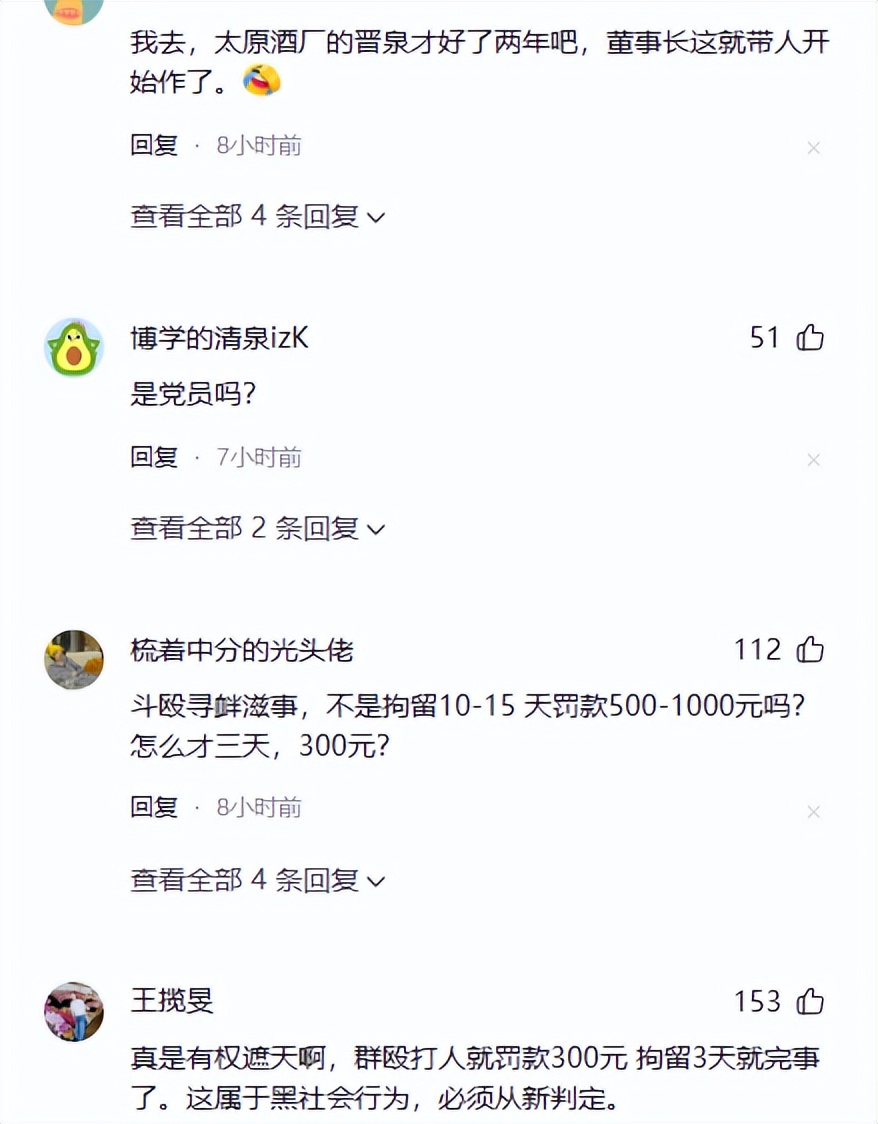 这一事件迅速引起了公众的广泛关注,尤其是太原酒厂作为一个有着70多年历史的国有企业,居然被一位董事长带头卷入暴力事件,实在让人感到震惊。国企在很多人的心目中是代表着稳健、责任和权威的象征,但这次的事件却把这一形象彻底打破。国企的领导竟然能够因一笔拖欠款项,亲自采取暴力手段来解决问题,这不仅让消费者对酒厂的品牌产生了质疑,也让人们开始反思国企与民间企业之间的权力平衡是否已经失控。