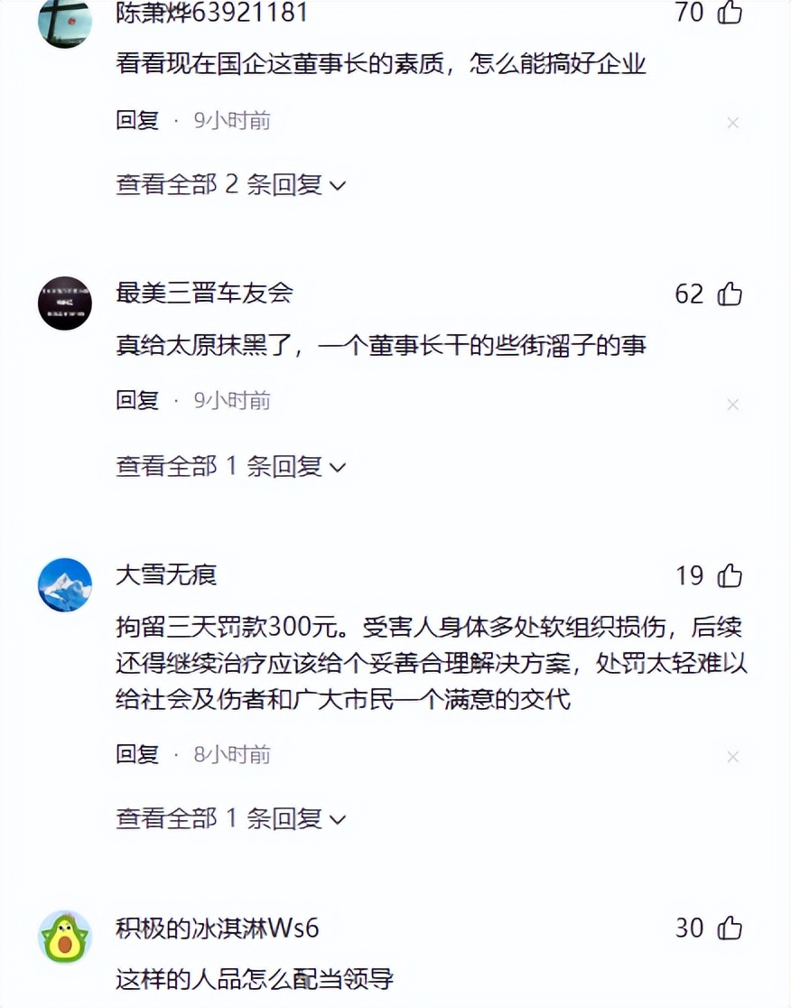 太原一国企董事长上门殴打他人被行拘:本人拒绝回应,官方回应