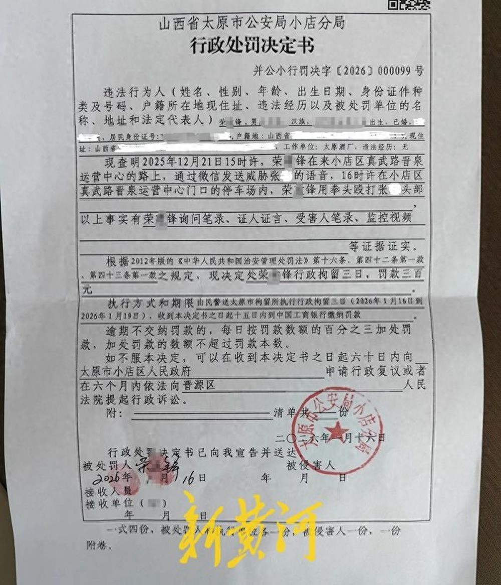 事件发生后,太原市公安局小店分局迅速介入调查,并做出了行政处罚。根据调查,警方查明了荣某锋在打人前,通过微信语音威胁张先生,而后在公司停车场直接动手。根据《中华人民共和国治安管理处罚法》的相关规定,荣某锋被处以行政拘留三日并罚款300元。这一处罚虽然让张先生暂时得到了一个结果,但大家依然疑惑:这样的处理方式,能否真正震慑那些权力膨胀的人?