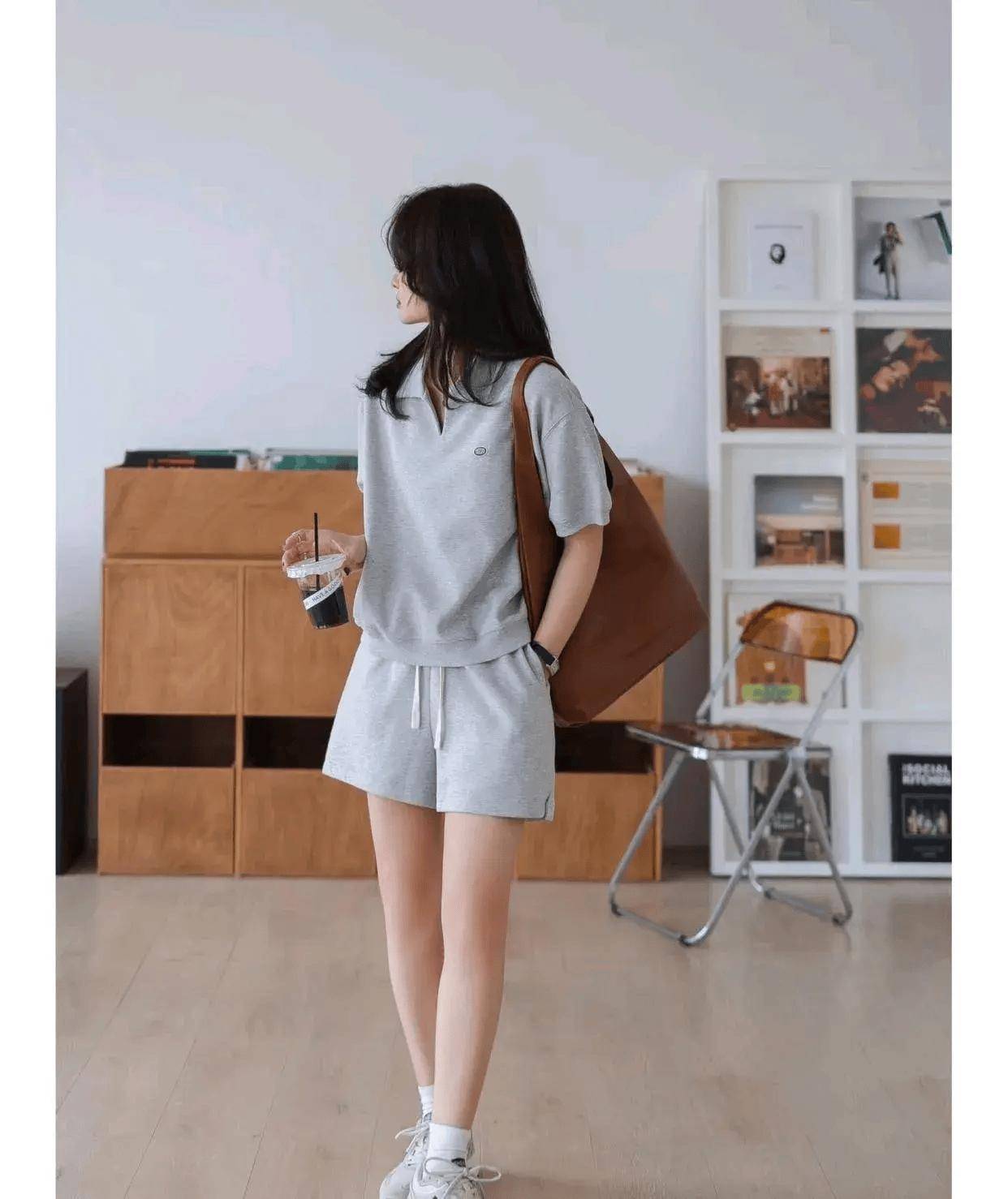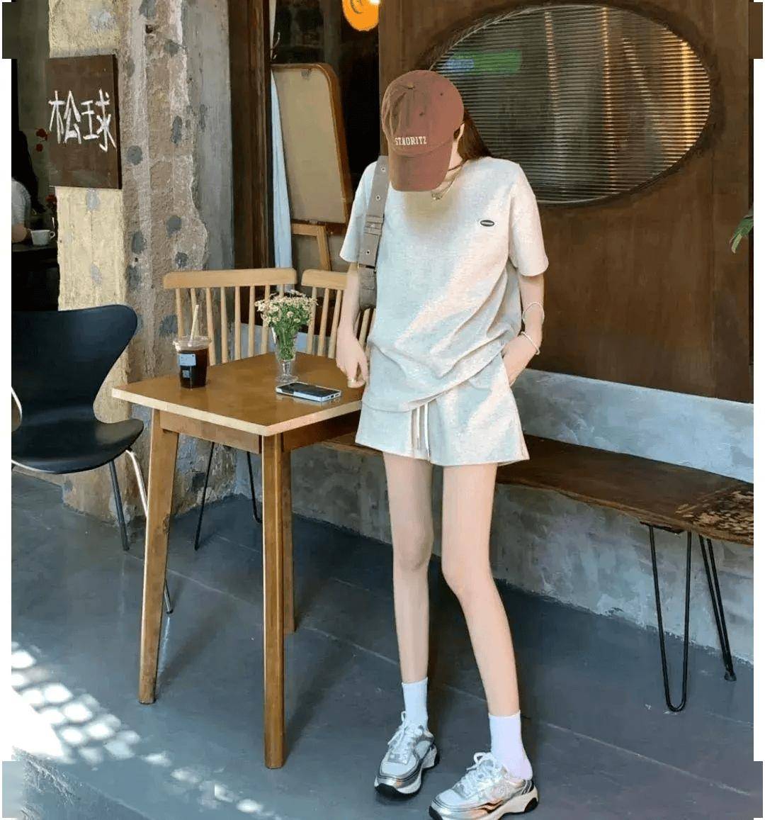 这一套休闲风的套装,光看着就很喜欢了,休闲舒适又自在。浅白灰的配色,完全不挑肤色,上下衣服的版型也很藏肉显瘦,记得出门要佩戴起一顶棒球帽,这样才更显青春和活力。