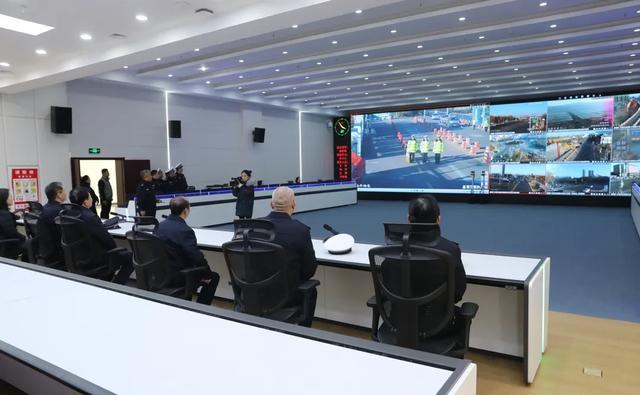 慰问组一行观看了交警支队直属大队民辅警交通手势操表演,参观了工作展板。潘志孝同志代表市总工会向奋战在一线的交警支队直属大队民辅警致以了崇高敬意和节日问候,发放了慰问品和慰问金,他肯定了运城公安交警在疏导保障和维护全市道路交通安全畅通方面做出的积极贡献。在支队指挥中心,潘志孝同志、刘春安同志通过视频调度系统向全市一线执勤民辅警进行慰问。