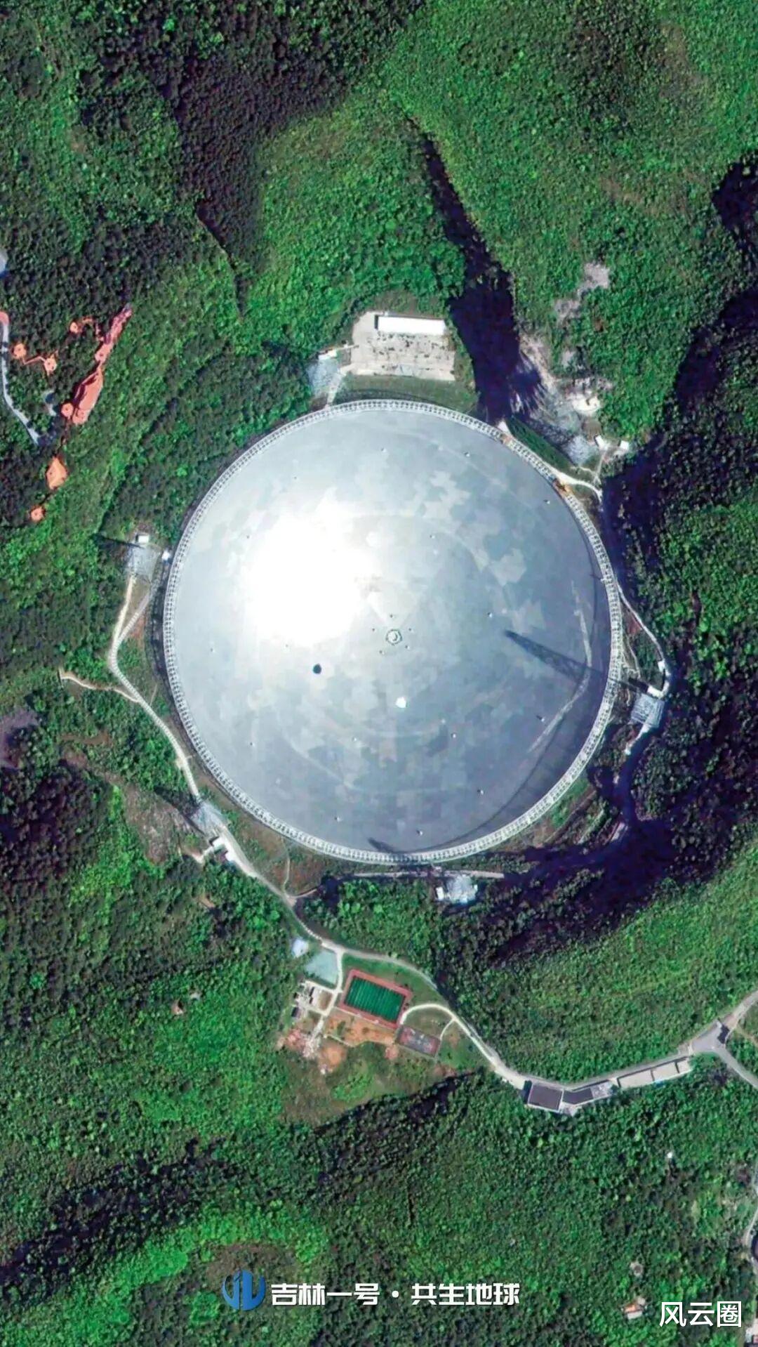 今年国庆期间,吉林一号卫星传回了一组令人惊叹的照片——被誉为中国天眼的500米口径球面射电望远镜FAST,在太空中宛如一口镶嵌在群山之间的“大锅”。