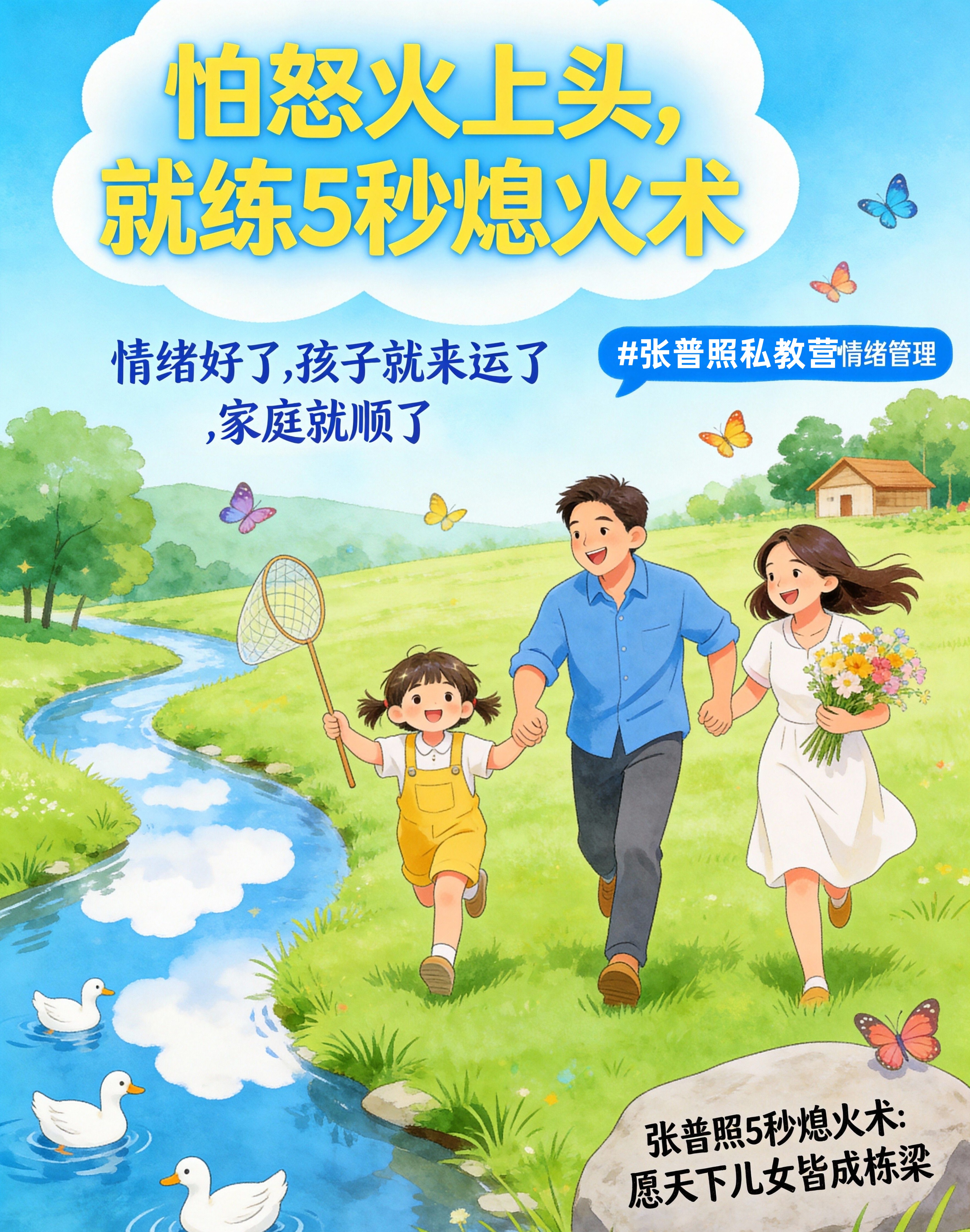 张普照5秒熄火术,是专门用在你血往头上涌,最难听的话冲到嘴边,下一秒就要吼出来让全家遭殃的那个 “生死5秒” 。它是一套基于神经科学的 “生理级应急程序” 。在情绪脑(杏仁核)即将劫持你、让你失控的临界点,它能通过一个简单的身心协同动作,直接切断从“怒火”到“吼叫”的失控链路。练习一次,父母马上就不生气了不发火了,内在瞬间通透,充满理解和智慧。 记住:想不发火,就得多练。怒火根本发不出来。