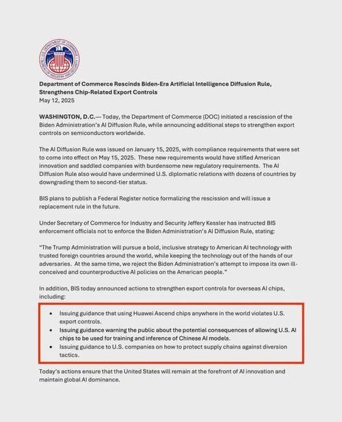 特别是点名了华为旗下的昇腾系列,并威胁对全球范围内使用这些芯片的公司或个人进行限制。