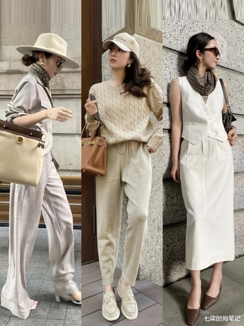 尤其是大地色+白色,简约清爽,能在视觉上营造出一种平和、宁静的氛围,让我们的整体形象更加优雅和迷人。