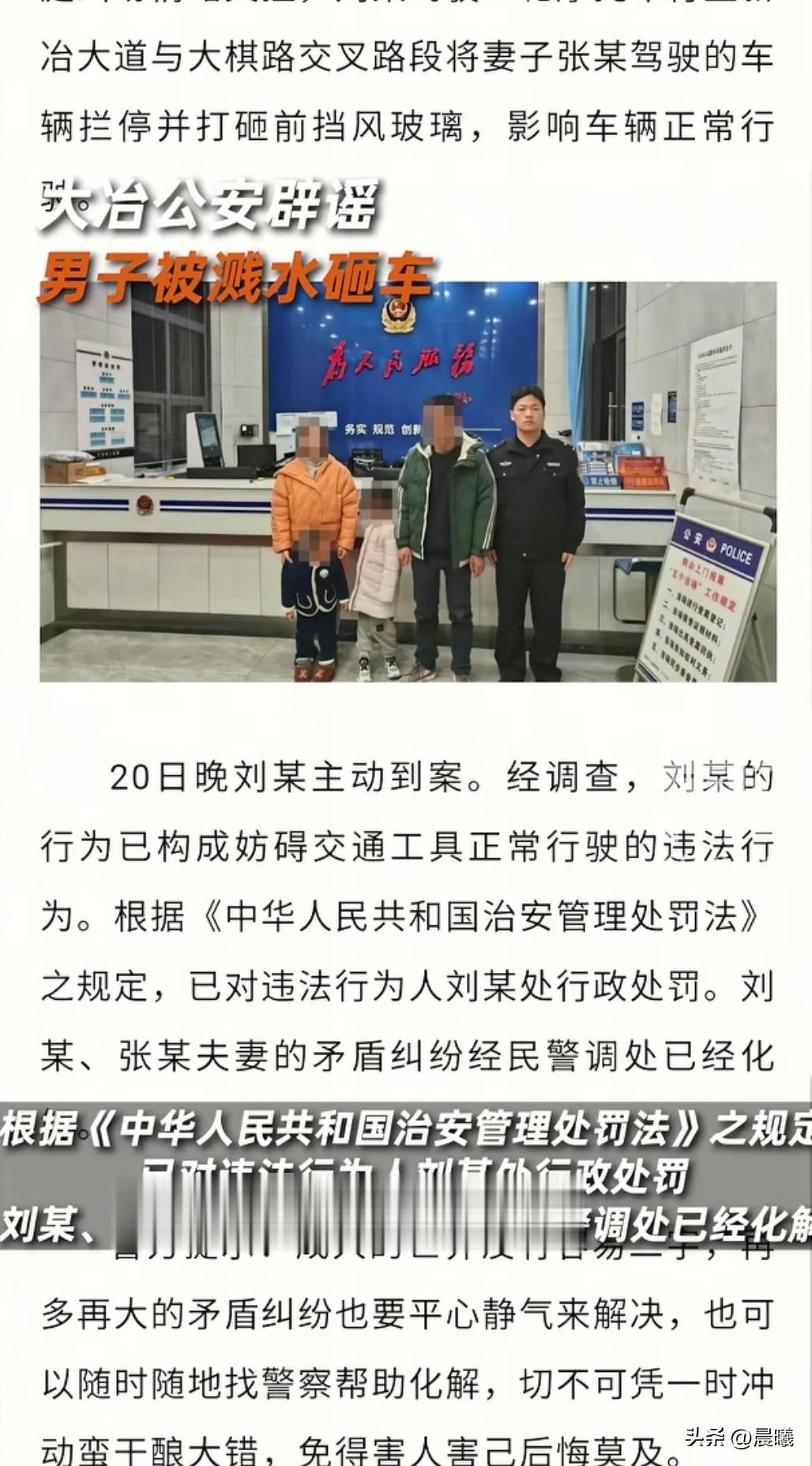 就在事情越来越被“定性”时,极目新闻记者从湖北大冶警方工作人员那里获悉,原来砸车男子刘某41岁,而开车女子张某,35岁,两人是夫妻关系,两人因为家庭矛盾发生口角,因为没有更好的沟通,导致丈夫情绪失控,骑着两轮车带着女儿在大街上拦停妻子的车辆,于是发生了媒体上传播的视频。