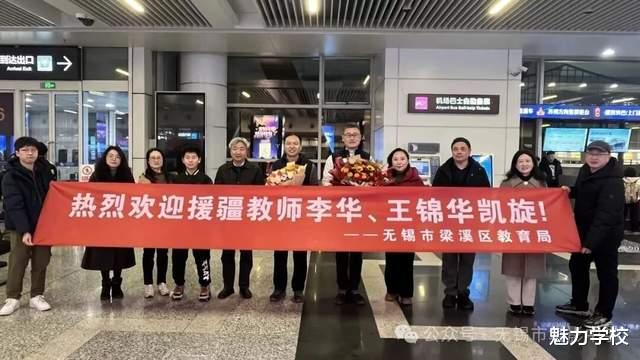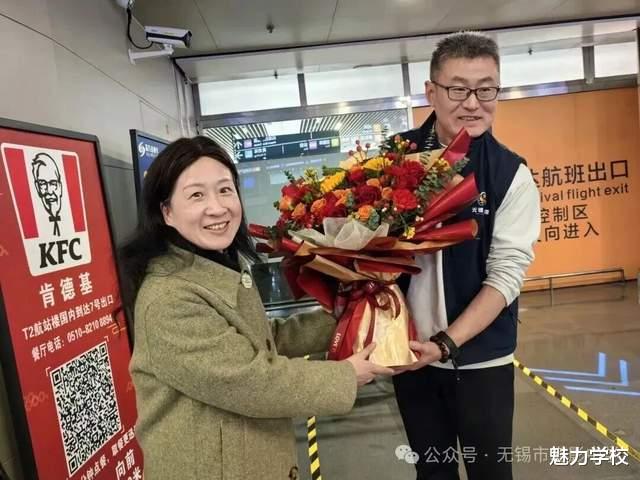 1月25日,无锡市塔影中学总务主任李华圆满结束援疆支教工作,顺利落地无锡硕放机场。在机场等候区,学校领导及李华老师的家属组成接机团,为载誉而归的他献上鲜花,欢迎他回家。