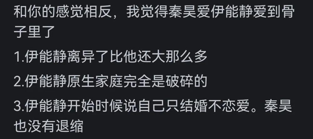 另一方面,一些网友分享了自己的个人经历,提供了更为宽广的视角。有的人曾经历过与秦昊类似的感情状态,认为爱情不一定要通过外在的表现来证明,内心的坚定和默契才是最重要的。他们的观点强调了爱情的多样性和复杂性,认为每对夫妻都有自己的相处之道。