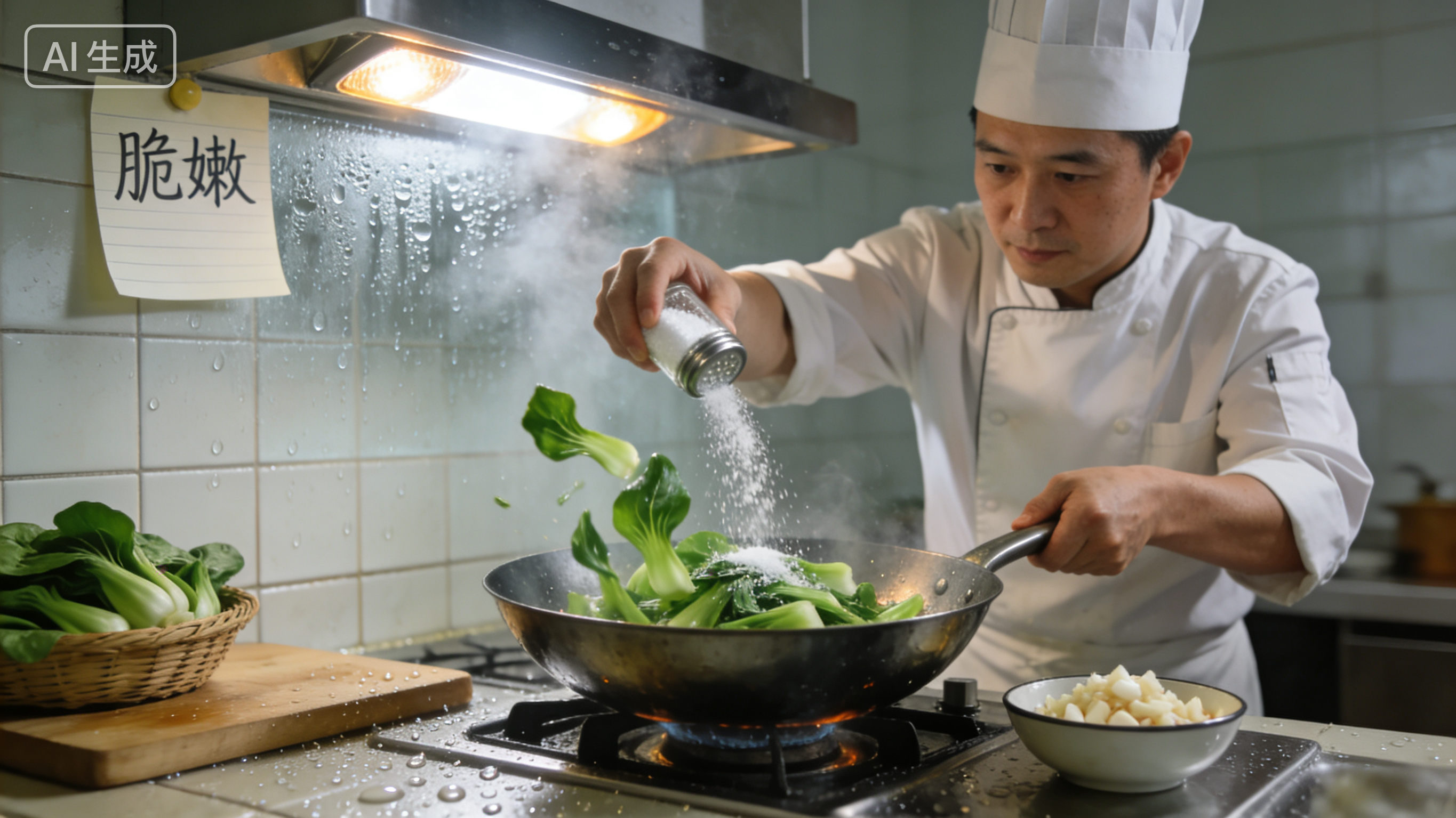 像豆角、蒜苔、土豆、胡萝卜这些根茎类蔬菜,水分含量低,质地偏硬,炒的时候要是放盐太晚,就会出现 “外咸里淡” 的情况,外面看着有味道,里面却没入味,吃着特别别扭!