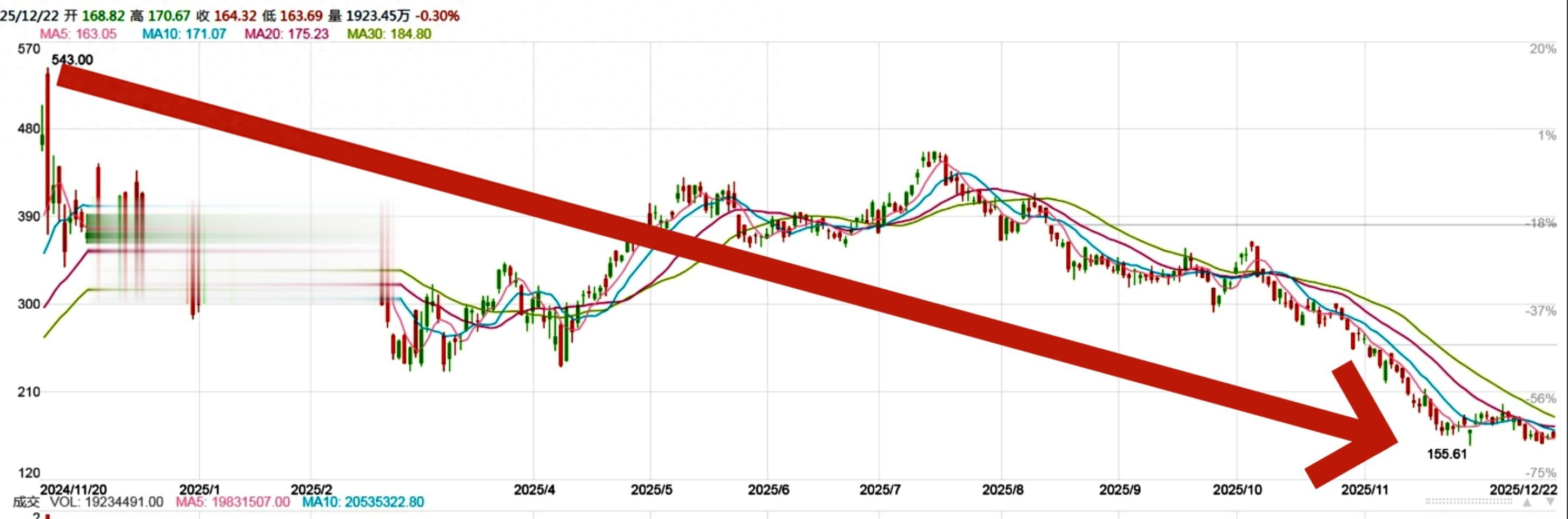 三是微策略股价与2024年11月20日的473.83美元的历史高点比较,暴跌65%。比特币自10月初创下历史高点以来已下跌约30%,同期微策略的股价暴跌超50%。近近三个月,该股已累计下跌50%。
