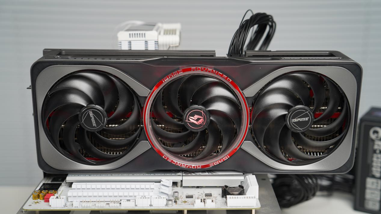 iGame GeForce RTX 5090D Advanced 32GB显卡的外观进行了重新设计,磨砂黑透外甲,我个人还是比较喜欢的。以其标志性的红圈“引力之环”设计,传承经典。其设计的灵感汲取自神秘的环状星系“哈氏天体”。