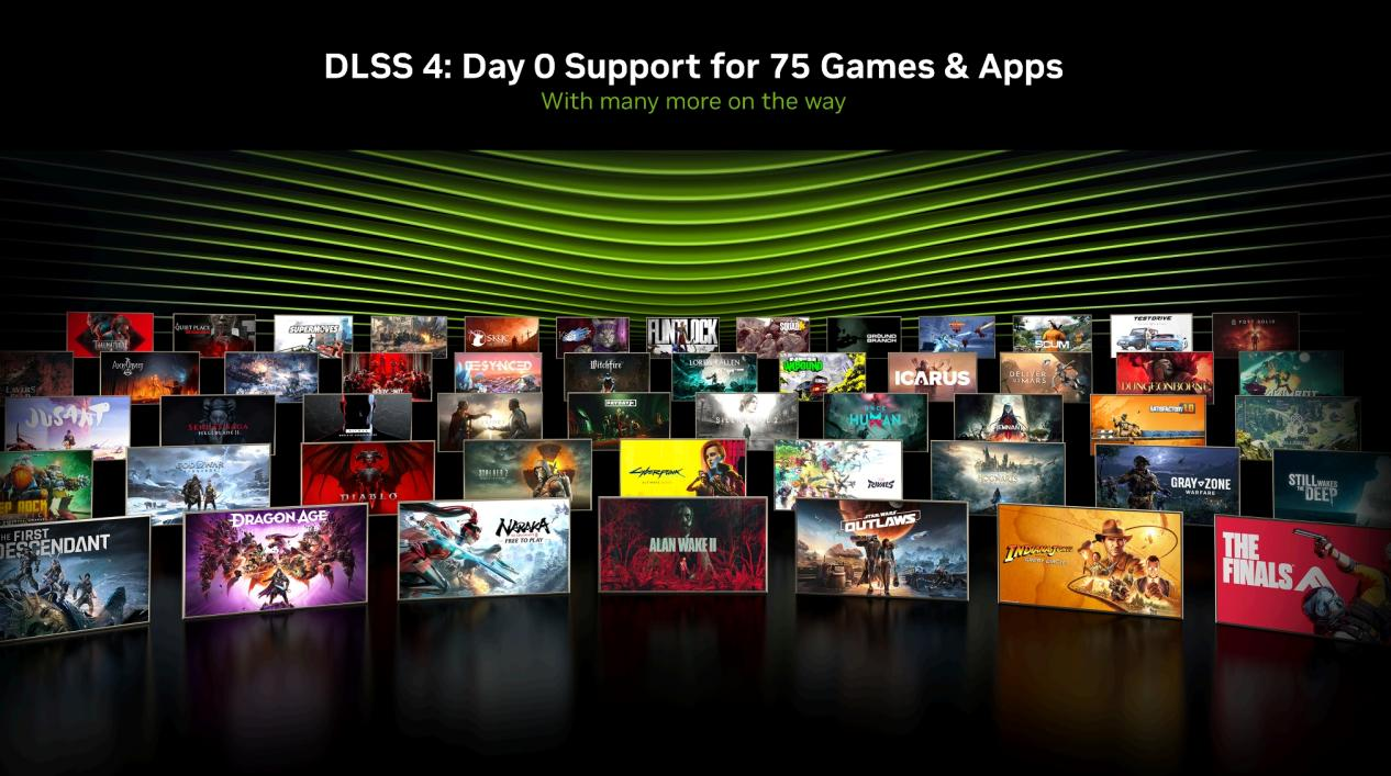 首发支持DLSS 4的游戏和应用已经有75款,包括《赛博朋克2077》、《霍格沃茨之遗》、《漫威争锋》、《星球大战:亡命之徒》等 热门游戏大作,未来也将会有越来越多的游戏加入。
