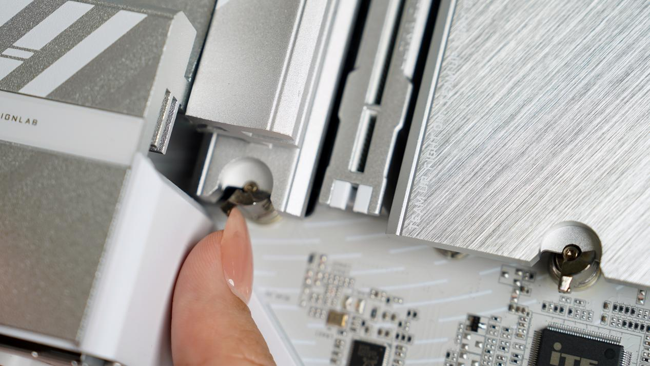 M.2 SSD插槽的散热装甲,也采用了这种快易拆设计,完全免工具来拆装。