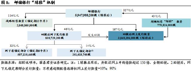 需要强调的是,邮储银行本次发行引入了“绿鞋”机制,意味着新股上市后30天的后市稳定期内,如股价因市场波动出现低于发行价的情况,承销商将从市场上买入股票,稳定二级市场价格,这是近期发行的银行股所没有的。10年来A股仅有3单IPO设置了“绿鞋”:工商银行(2006年)、农业银行(2010年 )和光大银行(2010年),均在上市30天内全额执行,在“绿鞋”行使期内股价均表现良好,平均股价涨幅超过10%。