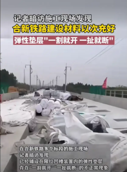 “350公里时速的大工程,用手一撕就断的材料?”这不是段子,这是合新铁路在建工地上真实发生的事。记者暗访揭露劣质垫层引发安全隐患,专业人士发出警告:高铁建设岂能如此儿戏?施工质量、责任人究竟该如何把关?