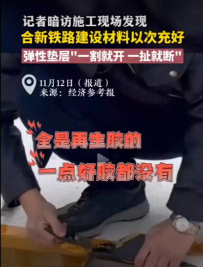 手撕垫层,不是喜剧桥段,也不是相声表演,而是工程现场的“惊喜”。谁都知道,材料不过关,铁路就是在行驶一颗“定时炸弹”,用生命为劣质材料买单,真的值得吗?