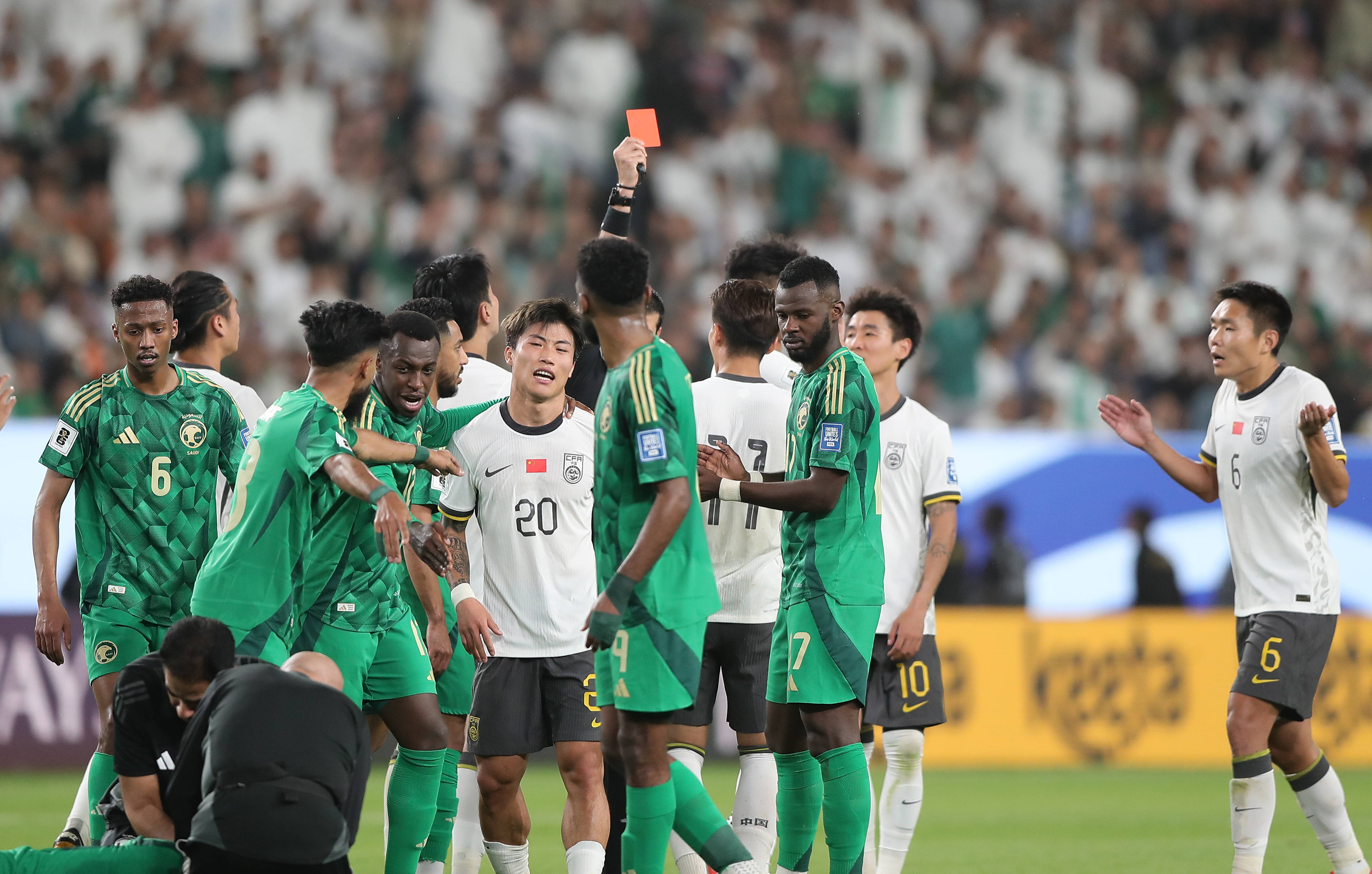 北京时间3月21日消息,世预赛亚洲区18强赛小组赛继续进行,在C组第7轮比赛中,中国男足客场挑战沙特男足。上半场比赛纳瓦夫-布沙勒击中横梁,费萨尔-加姆迪破门被吹,蒋光太伤退,林良铭无脑染红,下半场萨利姆-多萨里打破僵局,叶海亚破门被吹,最终全场比赛结束,国足0-1不敌沙特。