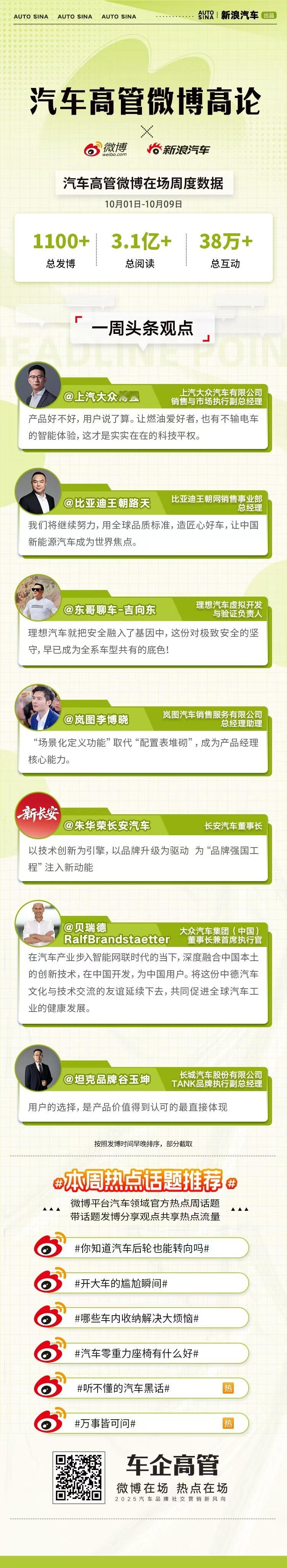 聚焦用户,创新技术,共同塑造中国汽车新未来,汽车高管微博高论,省流速览微博一周高